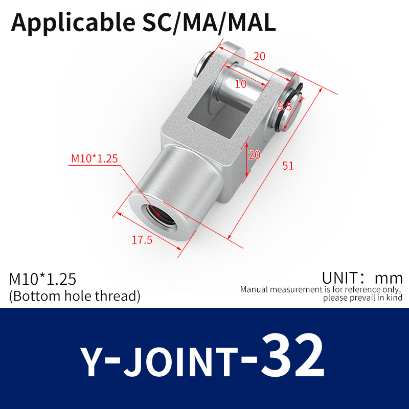 PNEUMATISCHER Luftzylinder mit 32 mm Bohrung und 25 mm Hub, doppeltwirkend, mit Y-Anschluss und 2 Stück 6 mm PC-Anschluss MAL32 x 25